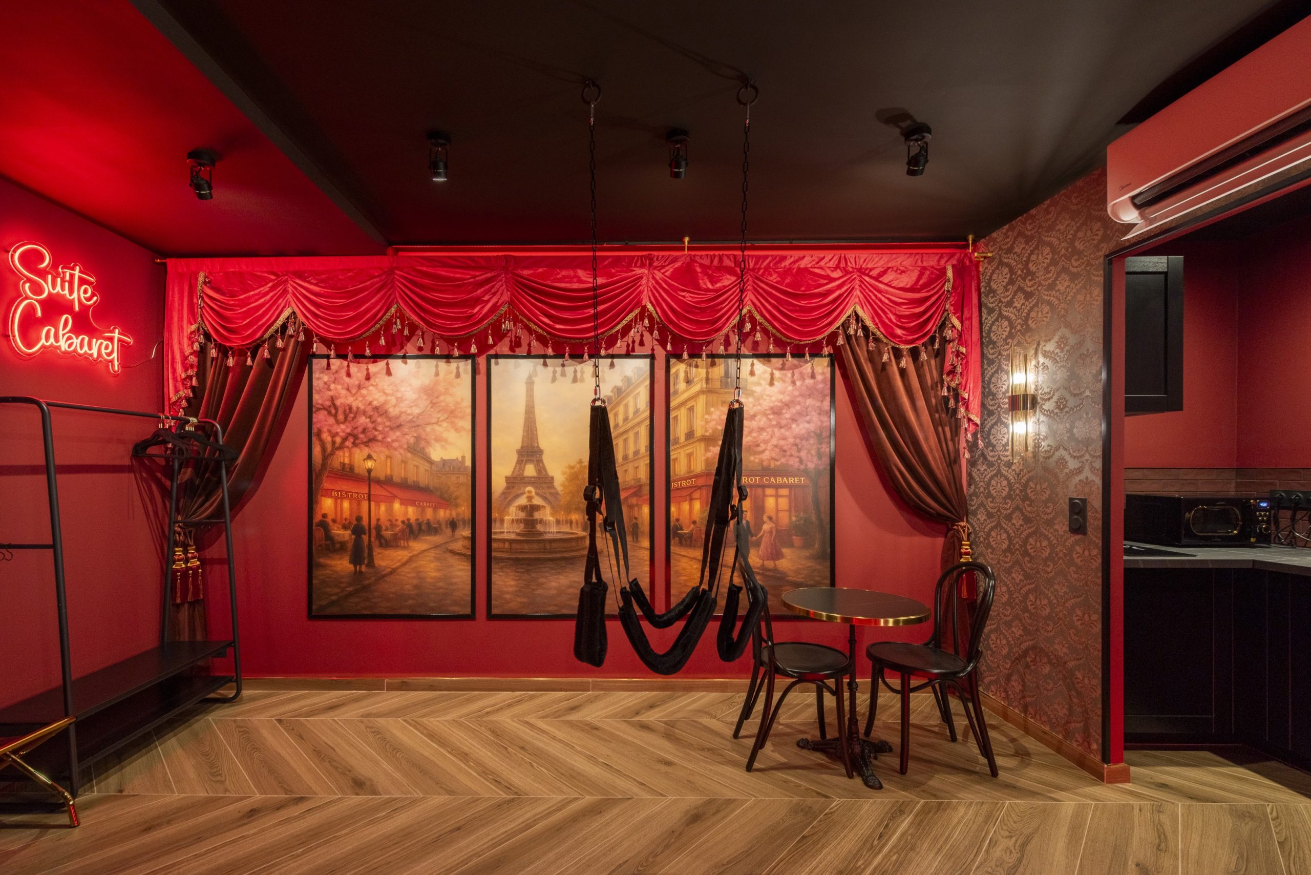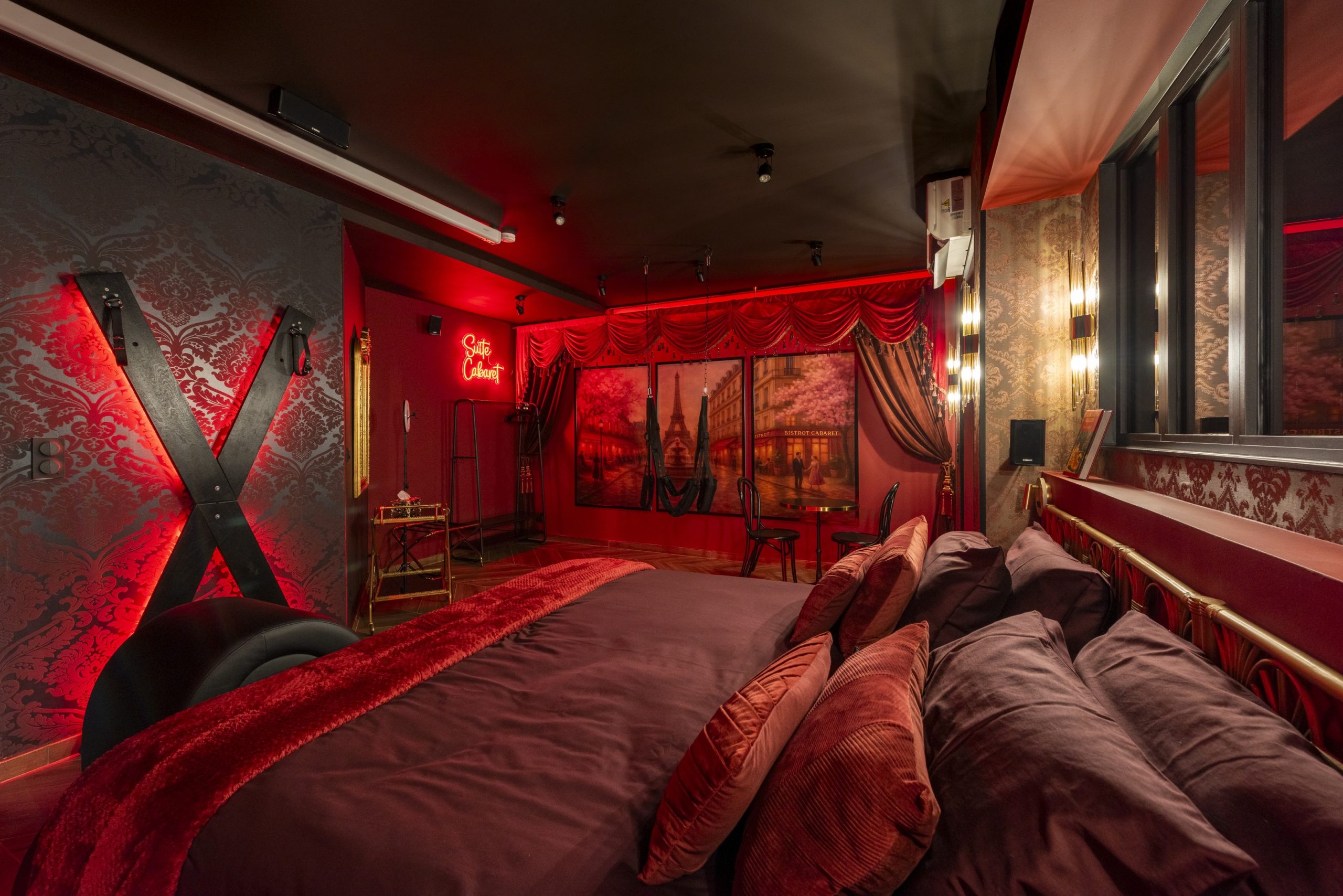 La Suite Cabaret vous invite à quitter le quotidien pour entrer dans une atmosphère feutrée, intime et envoûtante, inspirée des cabarets parisiens.